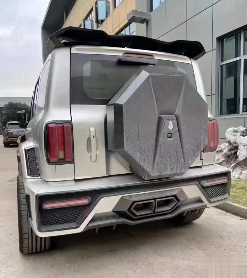 车尾部分,外挂式备胎也曾存在,但成了有棱有角的布局神色。而车顶镂空形势的高位扰流,搭配镶嵌了双边导流槽和中置双出排气的后包围,则好意思满对应了前脸的酷炫与搏斗属性。